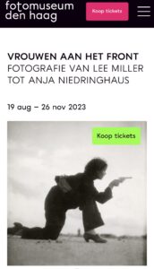 In my blog, I wrote an introduction to the ‘Women on the Front Line’ exhibition, which was held at the Photomuseum in The Hague. The blog mainly focused on whether it was clear from the photos whether they had been taken by women. I have not yet discussed the female war photographers featured in the exhibition. I will now address this. As the photographers worked in different periods, I have organized the blog posts by period and context. This makes it clearer how their position and working methods changed over time while their motivations remained constant.