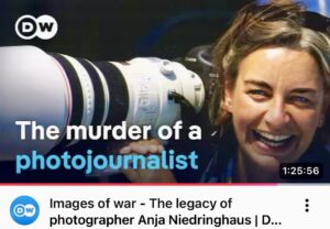 You can view 139 of Anja Niedringhaus’s photographs on the MUSEUM MMK FÜR MODERNE KUNST website, as well as on Der Spiegel’s website. Ten years after her death, AP Images honoured her on their website. There is also a tribute to Anja Niedringhaus titled ‘A life in Photos’ on the NBC News website. The International Women’s Media Foundation also honoured her ten years after her death on their website as well as the Deutsche Börse Photography Foundation.. You can also find her work on the World Press Photo website.